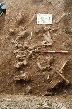 Avant le début de l'exploitation prévue de la carrière de calcaire, une couche d'argile de 12 mètres d'épaisseur a été retirée du site, révélant une dépression en forme d'entonnoir de 40 à 50 mètres de large sur le bord supérieur. Lorsque cette dépression a également été curée, une première couche d'outils lithiques et d'ossements d'animaux a été trouvée à une profondeur d'environ 20 mètres sous le bord supérieur de l'entonnoir. Le diamètre de l'entonnoir karstique était d'environ 40 mètres à cette profondeur[1]. En 2010 et 2011, la séquence archéologique d'environ 8 mètres d'épaisseur, soit 450 m3 de matériaux, a été complètement fouillée et extraite dans le cadre d'une fouille de sauvetage[2].