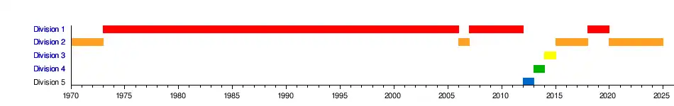 | 2013-2014 | 1re Ligue - Gr. 2 | 1er[10] | 61 | 26 | 19 | 4 | 3 | 67 | 25 | +42 | 22 | 1/32 de finale | - | ||