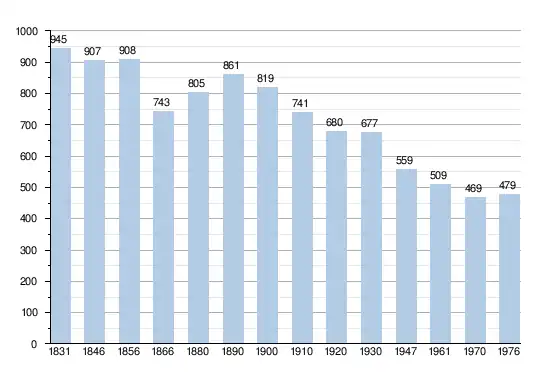 - Sources : INS, Rem. : 1831 jusqu'en 1970 = recensements, 1976 = nombre d'habitants au 31 décembre.