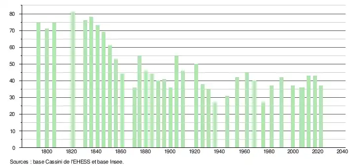 - ↑ Population municipale de référence en vigueur au 1er janvier 2025, millésimée 2022, définie dans les limites territoriales en vigueur au 1er janvier 2024, date de référence statistique : 1er janvier 2022.