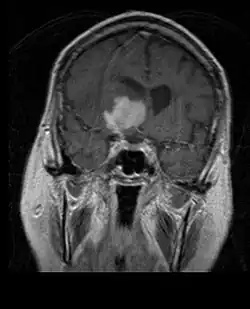 Sur-L'IRM montre une tumeur intracrânienne comme une lésion massive qui peut devenir plus luminescente après utilisation du produit de contraste. Cependant, il y a toujours une anomalie de signal dans -L'imagerie par résonance magnétique, qui indique la présence d'une néoplasie ou d'un œdème vasogénique. Habituellement, une luminescence accrue (amélioration du contraste) indique une tumeur d'un grade supérieur de malignité. Un anneau de contraste est caractéristique du glioblastome, avec la partie luminescente correspondant à la partie vitale de la tumeur maligne, et la plus foncée - zone hypointense correspondant à une nécrose tissulaire.