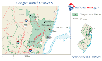 Le 9e district congressionnel du New Jersey est représenté au Congrès par le Démocrate Bill Pascrell, qui réside à Paterson. Il a été élu pour la première fois en 1996 dans l'ancien 8e district (avant le recensement de 2010), battant le Représentant sortant William J. Martini. Le 9e district comprend en grande partie les municipalités du Comté de Bergen et du Comté de Passaic.