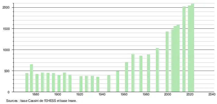 - ↑ Fiches Insee - Populations de référence de la commune pour les années 2006, 2007, 2008, 2009, 2010, 2011, 2012, 2013, 2014, 2015, 2016, 2017, 2018, 2019, 2020, 2021 et 2022.