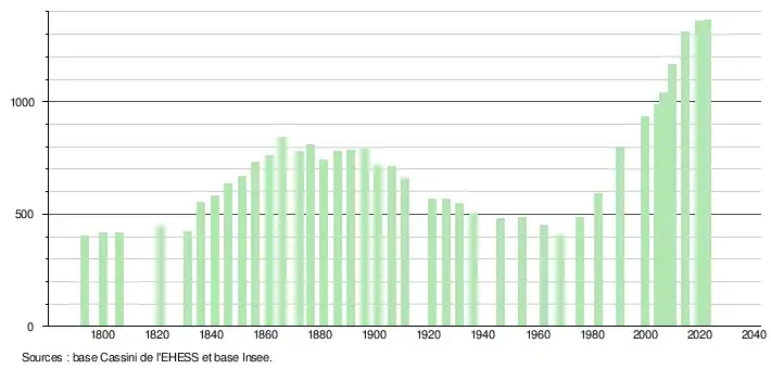 - ↑ Fiches Insee - Populations de référence de la commune pour les années 2006, 2007, 2008, 2009, 2010, 2011, 2012, 2013, 2014, 2015, 2016, 2017, 2018, 2019, 2020, 2021 et 2022.