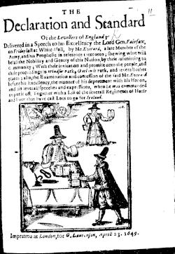 L'Armée sous l'influence prépondérante d'un parti politique radical originaire de Londres, les niveleurs, propose une nouvelle constitution révolutionnaire connue sous le nom de Agreement of the People. Celle-ci réclame le suffrage quasi-universel pour les hommes ainsi que la réforme des circonscriptions électorales, plus de pouvoir au Parlement, qui doit être renouvelé tous les deux ans, la liberté de religion et l'abolition de l'emprisonnement pour dettes[10].