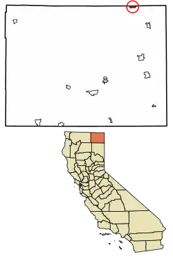 - (en) Cet article est partiellement ou en totalité issu de l’article de Wikipédia en anglais intitulé « New Pine Creek, California » (voir la liste des auteurs).