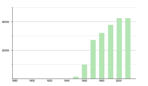 | 1960 | 9 884 | ▲ +545,17 % | |