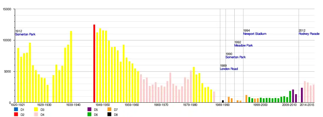 - ↑ (en) « Historique Newport County AFC », sur european-football-statistics.co.uk