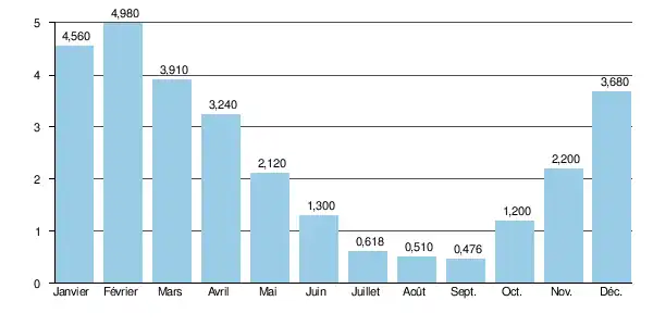 Le module de la rivière à Poiseux est de 2,38 m3/s.