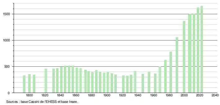 - ↑ Fiches Insee - Populations de référence de la commune pour les années 2006, 2007, 2008, 2009, 2010, 2011, 2012, 2013, 2014, 2015, 2016, 2017, 2018, 2019, 2020, 2021 et 2022.