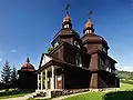 Elle a été construite près de la vieille église en bois baroque qui s'est graduellement détruite. Sa conception "Boikian" (un des 3 principaux groupes ethniques ukrainiens qui sont les Lemkians, les Boikians et les Hutsuls) est différente des autres églises en bois de la région. Cette conception avec la plus haute tour se situant au milieu, se retrouve généralement dans la région occidentale de l'Ukraine (Subcarpation Russ). Le type d'église avec des parties indépendantes du bâtiment est dit "boiko". Chacune des trois tours a une forme polygonale. La plus haute est la tour médiane au-dessus de la nef. Les tours au-dessus du "babinec" (l’espace dédié aux femmes) et du sanctuaire sont plus petits et plus bas. Devant l'entrée les portiques sont penchés contre les colonnes.