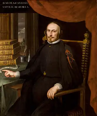 Nicolás Antonio, né le à Séville et mort le à Madrid, est un célèbre érudit à l'origine de la bibliographie moderne espagnole[1].