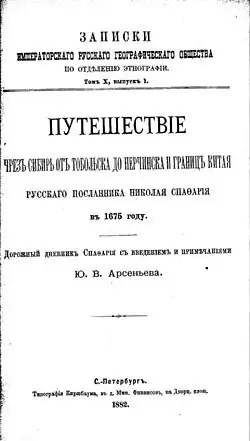 - Voyage à travers la Sibérie de Tobolsk à Nertchinsk et la frontière chinoise par l'ambassadeur Nicolae Spatharu/ lien web (ru) Путешествие через Сибирь от Тобольска до Нерчинска и границ Китая русского посланника Николая Спафария в 1675 году. Дорожный дневник Спафария. — СПб., 1882.
