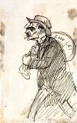 Il s'engage dans le dessin de caricatures, parfois politiques[8] ou militaires[11] dans des revues satiriques ou les quotidiens et les périodiques. En 1898, il publie l'album de caricatures intitulé Contimporani (Les contemporains), qui contient 26 caricatures des personnalités de l’époque[12].