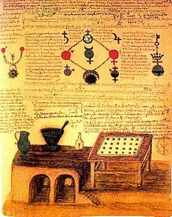 L'alchimie ne disparut pas avec le XVIIIe siècle et les Lumières. Mais si elle garda une certaine caution scientifique (Newton, au cours de ses études alchimiques, s'intéressa aux « hiéroglyphes » du Livre des figures et du Livre d'Abraham le juif[80]), car il ne semblait pas possible de montrer l'impossibilité théorique de la transmutation, l'échec de sa réalisation pratique accentua progressivement son discrédit moral et social au cours du siècle. Elle fut de plus en plus perçue comme une chimère ruineuse, comme chez Fontenelle (Histoire de l'académie des sciences 1722) et chez Montesquieu dans l'une de ses Lettres persanes (1721)[81] : Rica raconte qu'il a rencontré un homme en train de se ruiner parce qu'il croit être parvenu au grand œuvre, et qui lui affirme : « Ce secret, que Nicolas Flamel trouva, mais que Raymond Lulle et un million d'autres cherchèrent toujours, est venu jusques à moi, et je me trouve aujourd'hui un heureux adepte ».