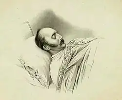 Après 29 ans de règne, l’Empereur Nicolas Ier meurt le 2 mars 1855 à Saint-Pétersbourg, dans sa chambre du palais d'Hiver, à l’âge de 58 ans. Il est inhumé quelques jours plus tard en la cathédrale Pierre-et-Paul. Son premier fils, le prince héritier Alexandre, lui succède sur le trône et devient Empereur sous le nom d’Alexandre II. Certains historiens contemporains de la mort de l'empereur ont affirmé qu'il s'était suicidé à la suite de la défaite de la guerre de Crimée. Une étude récente[8] laisse plutôt penser qu'il est mort d'une mauvaise grippe. C'est ce qu'ont conclu des experts sur la base des notes laissées par son médecin.