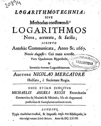 Il est aussi à l'origine du développement en séries de la fonction logarithme népérien qu'il est le premier à nommer logarithme naturel :