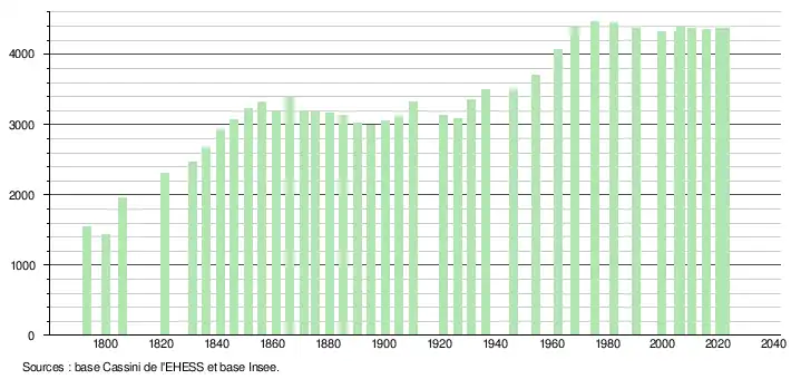 - ↑ Fiches Insee - Populations de référence de la commune pour les années 2006, 2007, 2008, 2009, 2010, 2011, 2012, 2013, 2014, 2015, 2016, 2017, 2018, 2019, 2020, 2021 et 2022.