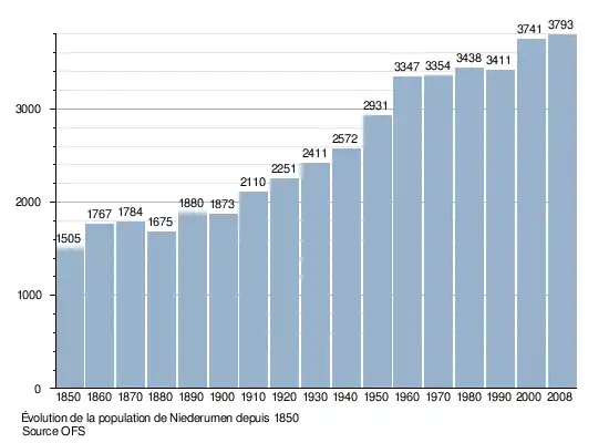 Le graphique suivant résume l'évolution de la population de Niederurnen entre 1850 et 2008[3] :