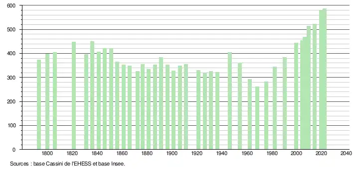 586 hab. (2022 en évolution de +7,33 % par rapport à 2016)