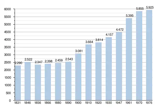 - Sources : INS, Rem. : 1831 jusqu'en 1970 = recensements, 1976 = nombre d'habitants au 31 décembre[2].