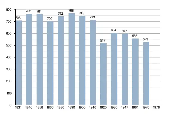 • Sources : INS, Rem. : 1831 jusqu'en 1970 = recensements, 1976 = nombre d'habitants au 31 décembre[3].