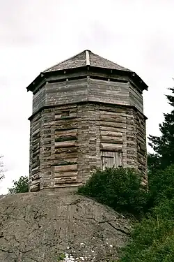 Reproduction du Fortin russe no 1 (une des trois tours d'observation qui gardaient les murs de la palissade à Nouvelle Archange) tel que reconstruit par le Service des Parcs Nationaux en 1962.