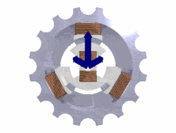 Lors de sa présentation au Congrès international sur l'électricité, dans le hall agricole de l'exposition universelle, Tesla présente un générateur électrique alternatif à vapeur qu'il a breveté cette année-là, ce qu'il pense être une meilleure façon de générer du courant alternatif[134]. La vapeur est forcée dans un oscillateur et s'échappe par une série d'orifices, poussant un piston fixé à une armature de haut en bas. L'armature magnétique vibre alors de haut en bas à grande vitesse, produisant un champ magnétique alternant. Celui-ci induit un courant électrique alternatif dans les bobines de fil situées à proximité. Cela permet de supprimer les pièces compliquées d'un moteur/générateur à vapeur, mais n'est finalement jamais considéré comme une solution technique viable pour produire de l'électricité[135].
