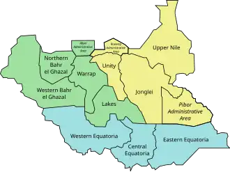 La région est composée des États de Jonglei, Unité, et du Nil Supérieur, et des zones administratives de Ruweng (en) et Pibor (en). Elle possède une frontière avec l'Éthiopie à l'est et le Soudan au nord.