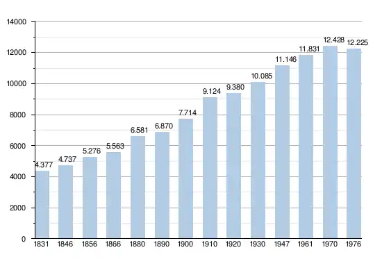 - Sources : INS, Rem. : 1831 jusqu'en 1970 = recensements, 1976 = nombre d'habitants au 31 décembre[4].