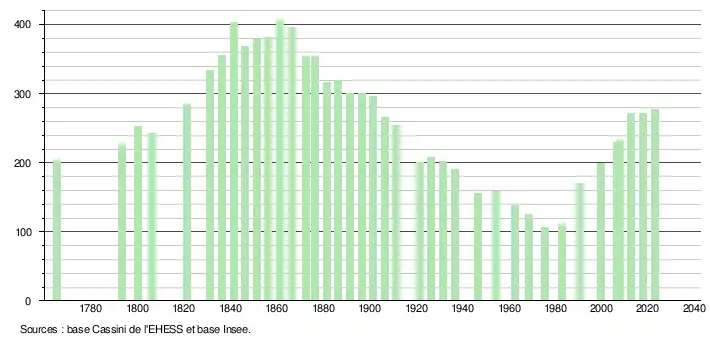 - ↑ Fiches Insee - Populations de référence de la commune pour les années 2006, 2007, 2008, 2009, 2010, 2011, 2012, 2013, 2014, 2015, 2016, 2017, 2018, 2019, 2020, 2021 et 2022.