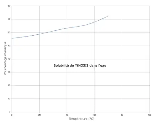 Le nitrate d'yttrium est un solide blanc déliquescent composé d'azote, d'oxygène et d'yttrium.