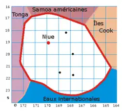 Niue[6], Nioué[7] ou Niué[8] /nju.e/ (en anglais Niue[9], en niuéen Niuē) est un pays insulaire de l'océan Pacifique sud, en Polynésie occidentale. Il est situé à 2 400 km au nord-est de la Nouvelle-Zélande, au centre d'un triangle formé par les îles Tonga, Samoa et Cook.