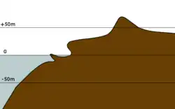 Cette configuration est le résultat de l'émergence d'un volcan sous-marin, il y a trois millions d'années, qui s'est ensuite éteint, et dont le sommet s'est recouvert d'un récif corallien pour former un atoll, il y a 1,2 million d'années. Puis, par les montées et descentes successives du niveau de la mer (au gré des différents épisodes de glaciation), d'autres dépôts coralliens se sont formés plus ou moins loin du sommet, créant le palier actuellement observé[15]. L'attitude actuelle du sommet de l'île est de 68 m[16].