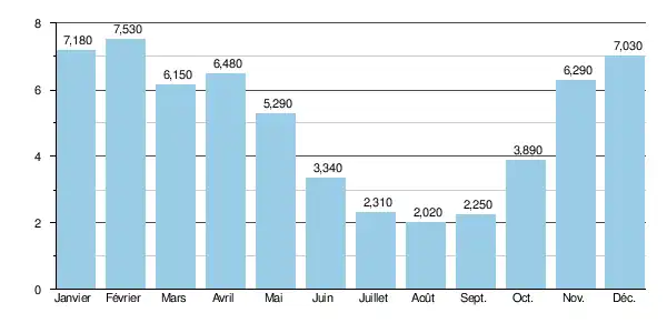 - 1 2 3 4 5 6 7 Banque Hydro - Ministère de l'Écologie, « Synthèse de la Banque Hydro - La Nivelle à Saint-Pée-sur-Nivelle (S5144010) » (consulté le )