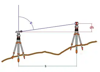Le nivellement trigonométrique est réalisé par calcul du dénivelé et non plus sa mesure directe. On ne mesure plus le dénivelé entre deux points pour déduire une altitude, mais on calcule tout d'abord ce dénivelé grâce à des mesures d'angles et de distances réalisés à l'aide d'un théodolite ou d'un tachéomètre. Selon le matériel et le mode opératoire, on atteint des précisions centimétriques ou décimétriques.