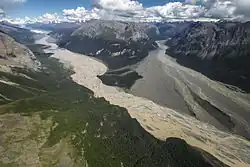 Longue de 37 milles (60 km), elle prend sa source dans les montagnes Wrangell et coule en direction du sud puis de l'ouest, du glacier Nizina jusqu'à la Rivière Chitina à 12 milles (19 km) au sud-ouest de McCarthy.