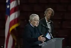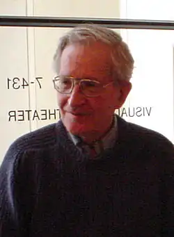 Noam Chomsky[a] (/ˈnoʊm ˈtʃɑmski/[b] ), né le à Philadelphie, est un linguiste américain. Professeur émérite de linguistique depuis 2002 au Massachusetts Institute of Technology, où il a enseigné depuis 1955[2], il fonde la linguistique générative. Il se fait connaître du grand public, à la fois dans son pays et à l'étranger[3], par son parcours d'intellectuel engagé de tendance socialiste libertaire et anarchiste[4],[5].