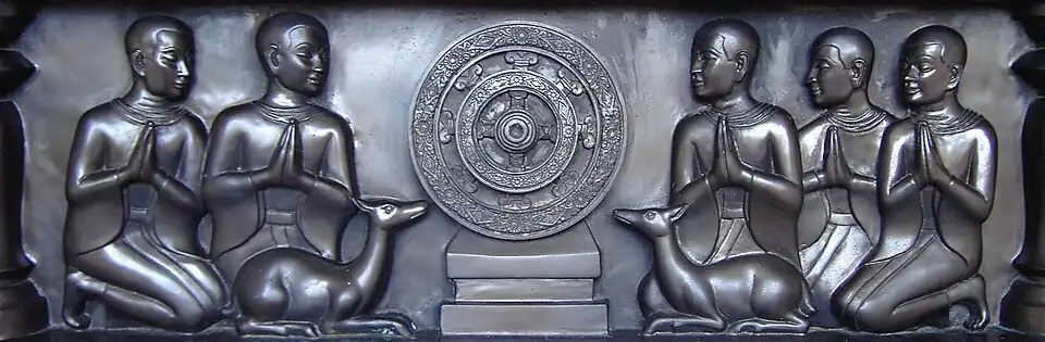 Le cœur de l'enseignement du Bouddha est contenu dans les Quatre nobles vérités exposées dans le premier sermon intitulé Mise en route de la roue de la loi (Dhammacakkappavattana Sutta) qu'il fit à Sarnath, près de Bénarès, devant les cinq bikkhus (moines) qui avaient été ses compagnons durant la période d'exercices ascétiques que le Bouddha avait pratiqués.