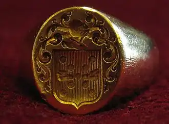 - La noblesse de chancellerie : la charge de secrétaire du roi, maison et couronne de France est créée en 1485. Ses conditions d'anoblissement ont été modifiées au fil des siècles. Cette charge a été surnommée « la savonnette à vilains »[49] en raison du grand nombre de familles qui ont été anoblies par son exercice (14% des familles actuellement membres de l'ANF selon Régis Valette).