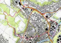- ↑ Les ruisseaux intermittents sont représentés en traits pointillés.