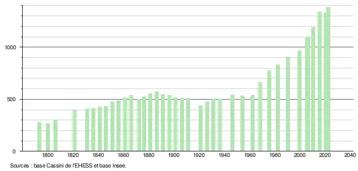 - ↑ Fiches Insee - Populations de référence de la commune pour les années 2006, 2007, 2008, 2009, 2010, 2011, 2012, 2013, 2014, 2015, 2016, 2017, 2018, 2019, 2020, 2021 et 2022.