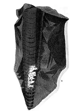 « A fossil shell. The original a Nautilus. (...) The crocodile, said to have been found in the limestone at Ashford, appears to be nothing more than a particularly large specimen of this or some other Orthoceratite (...) »