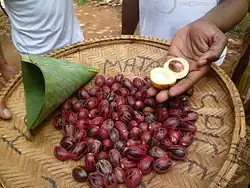 L'arille de la noix de muscade, séchée, appelée macis ou fleur de muscade, est très appréciée pour sa coloration qui varie du jaune à l'orange. De propriétés aromatiques voisines, la noix de muscade aurait tendance à être plus douce que le macis. Le macis est un condiment constitué par le prolongement rameux et charnu de l'enveloppe (arille) de la noix de muscade, originaire des régions tropicales. C'est une résille de fibres, rouge écarlate quand elle est fraîche, que l'on fait sécher ; elle devient alors rosée et on la réduit en poudre. Le macis a un parfum de cannelle et de poivre, il est utilisé surtout en charcuterie et dans les mélanges d'épices. Il relève les potages et les viandes en sauces et remplace la noix de muscade dans les omelettes, la béchamel ou la purée de pomme de terre.