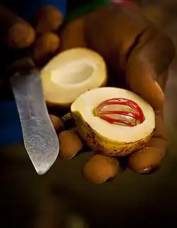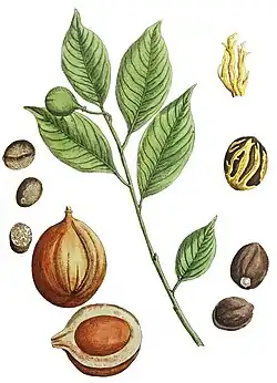 La noix de muscade est à l'origine cultivée au Moyen Âge dans les îles Banda[note 1] dans l'archipel des Moluques aujourd'hui en Indonésie[1] et vendue aux Vénitiens à des prix élevés, bien que le lieu exact de sa culture ne soit jamais révélé à ces derniers[2].