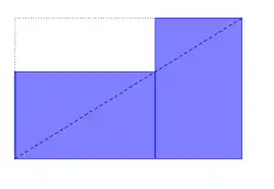 En disposant côte à côte deux rectangles identiques, l'un en format paysage et l'autre en format portrait (figure 4), on dessine les contours d'un nouveau rectangle. Le rectangle de départ est d'or si et seulement si sa diagonale est confondue avec la diagonale du grand rectangle. En effet, si sur le rectangle a × b de la figure 3 on trace la diagonale, le rectangle horizontal obtenu sera d'or parce qu'homothétique du grand, et comme sa longueur est b, c'est donc le même que le rectangle vertical, qui est d'or comme expliqué dans le paragraphe suivant.