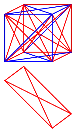 Soit un hypercube de dimension n dont on relie tous les couples de sommets pour obtenir un graphe complet à 2n sommets. Si l'on colorie chacune des 2n–1(2n – 1) arêtes du graphe en bleu ou en rouge, quelle est la plus petite valeur de n telle que, pour chaque façon de colorier le graphe, il existe un sous-graphe complet monochrome sur quatre sommets coplanaires ?