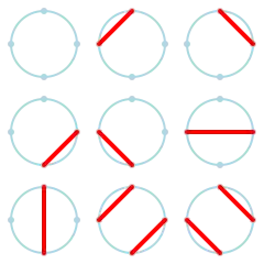 Le nombre de Motzkin d'indice est le nombre de façons de choisir des cordes ne se coupant pas, parmi les cordes reliant points disposés sur un cercle. Les nombres de Motzkin satisfont à la relation de récurrence suivante :