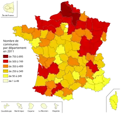 Le , la France comptait 36 700 communes soit vingt communes de plus qu'au : trois de plus en métropole[1] et les 17 communes du nouveau département de Mayotte.