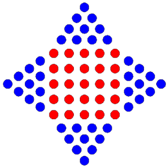 En outre : par exemple, le nombre 36 peut être représenté à la fois par un carré ayant six pois sur chaque côté et par un triangle ayant huit pois sur chaque côté :